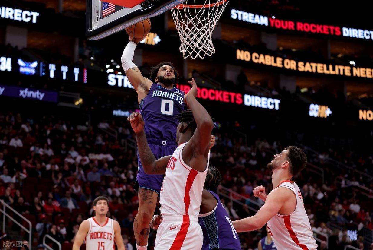 NBA常规赛,火箭坐镇主场迎击黄蜂队。本场比赛之前,火箭31胜18负排名西部第4,交易截止日前火箭显得有些沉寂,他们是联盟仅有的三支,没有任何操作的队伍之一。作为本赛季总冠军的有力争夺者,火箭对他们的阵容很有信心,的确,他们是联盟静态天赋最好的一支球队,平均身高联盟第一,这也给他们带来了争冠空间,而杜兰特的到来也提升了火箭的争冠上限。另一边的黄蜂队,本场比赛之前,23胜28负排名东部第11,作为东部一匹不容小觑的黑马,黄蜂近期已经悄悄轰出一波7连胜,势不可挡。